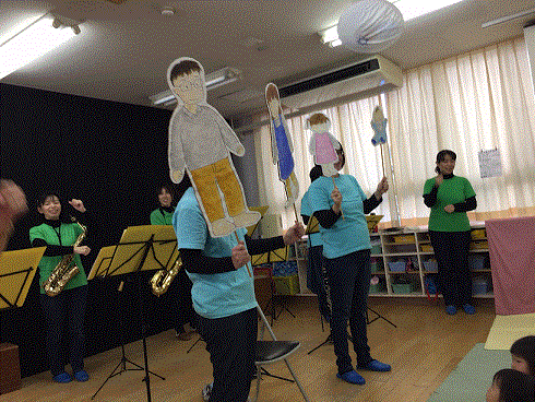 Fl 1人 Cal 2人 Sax3人 perc1人 チビっこ2人