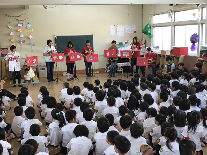 こちらの幼稚園は、毎年二学期の始業式に読んでいただいて、演奏をさせていただいています。