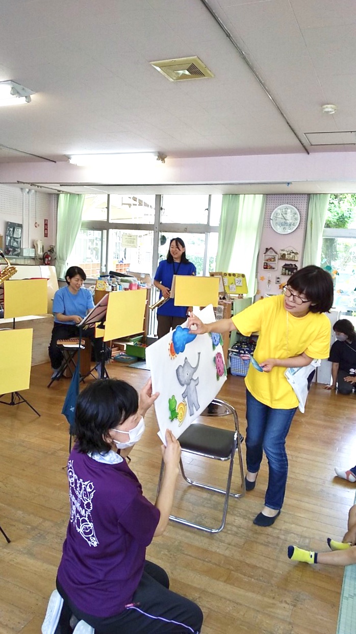 こちらの保育園へは第一回目は冬、第二回目は秋、そして今回は夏の訪問となり、色々な季節の曲を聴いていただいています。