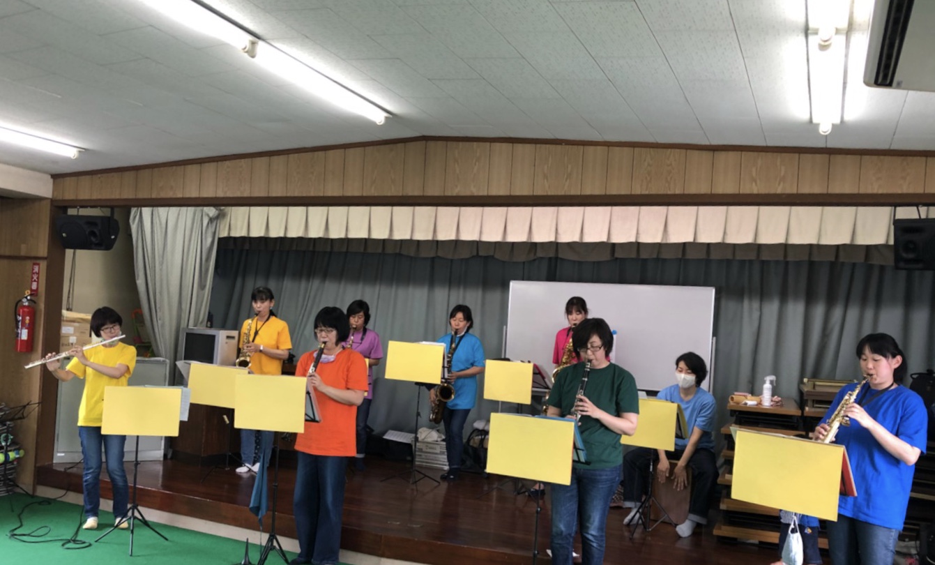 Flute1人、Clarinet2人、Sax5人、Perc1人、こども2人