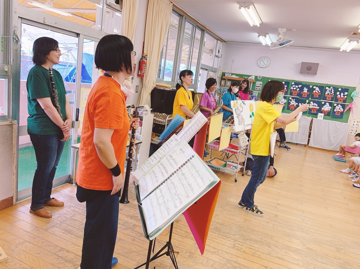 Flute1人、Clarinet2人、Sax4人、Perc1人、こども2人