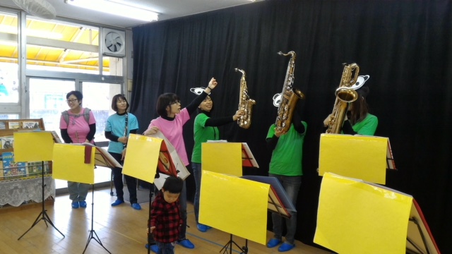 Fl 3人 Cl 3人 Sax3人 perc1人 チビっこ4人